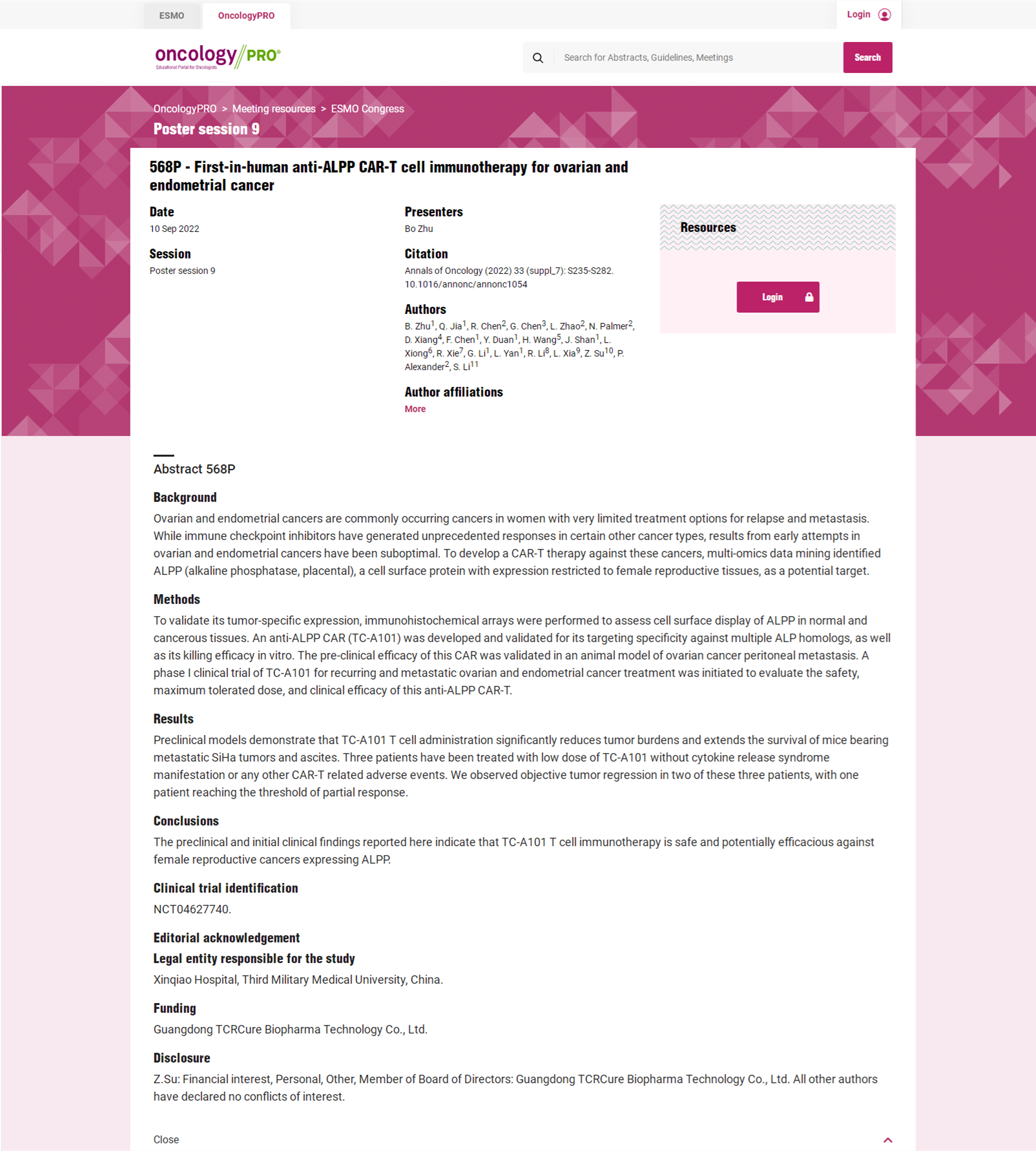 臨床前和初步臨床研究結(jié)果表明,TC-A101 T細(xì)胞免疫療法對(duì)表達(dá)ALPP的女性生殖癌是安全且潛在有效的。