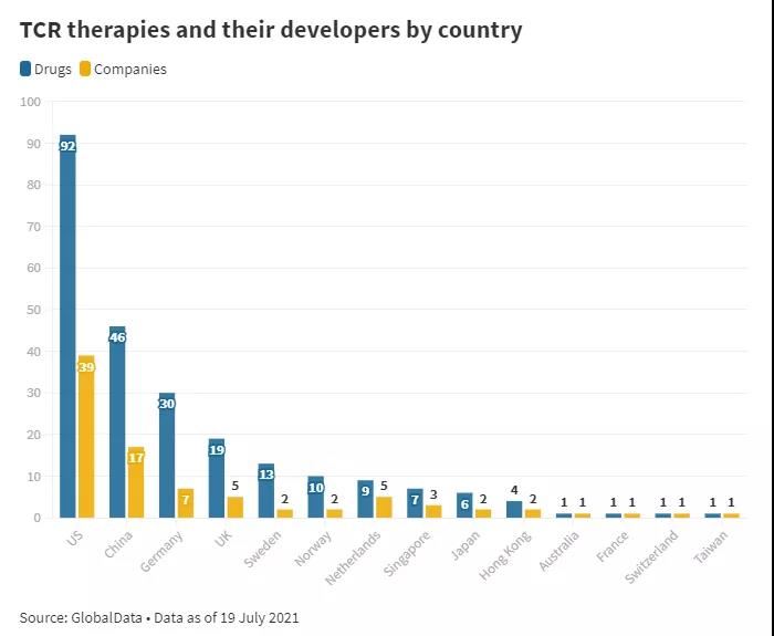 德國、英國和荷蘭等歐洲國家擁有一些僅次于美國和中國的全球最大TCR-T開發(fā)團(tuán)隊。這些國家領(lǐng)先的TCR-T公司包括Immatics、荷蘭公司Gadeta、GSK和英國生物技術(shù)Adaptimmune。此外,在過去幾年中,歐洲以TCR為重點的生物技術(shù)也給出了大力支持。